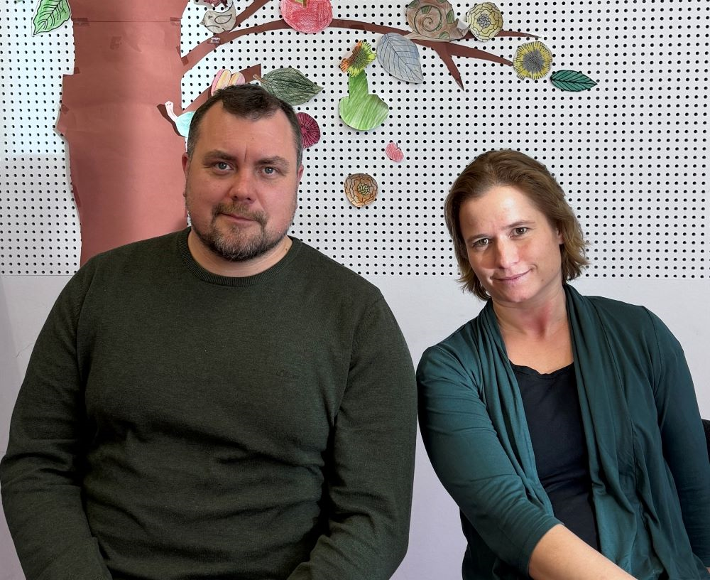 Herr Scheurer (Sozialpädagoge) links und Frau Rebhan (Klassenleitung) rechts