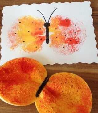 Besonders hübsch und kinderleicht lassen sich Schmetterlinge im Schwammdruck herstellen.