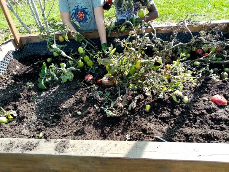 Die Pflanzen welken, das Gemüse ist geerntet, die Natur stellt sich auf den Winter ein. Auch die Schüler*innen der GTO6 nehmen sich den Vorbereitungen des Gartens für die Winterzeit an. Und es ist einiges zu tun in unserem neuen Schulgarten! Da muss der Kartoffelacker von Unkraut befreit und geharkt werden, der Topinambur sowie die Himbeeren bleiben aber drin! Die Hochbeete werden geräumt, doch Achtung! Das eine oder andere Kraut kann drinbleiben, denn es ist winterhart. Entwurzelte Kräuter, Zucchini- und Tomatenpflanzen füllen unseren Kompost, der uns nächstes Jahr Nährstoffe liefern wird. Doch jeder Gärtner weiß: Damit ist die Arbeit noch nicht getan! Und auch die Schüler*innen sind gespannt, was sie diesen Herbst im Schulgarten noch erleben dürfen!
