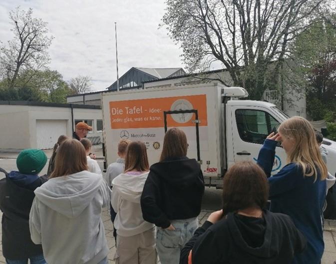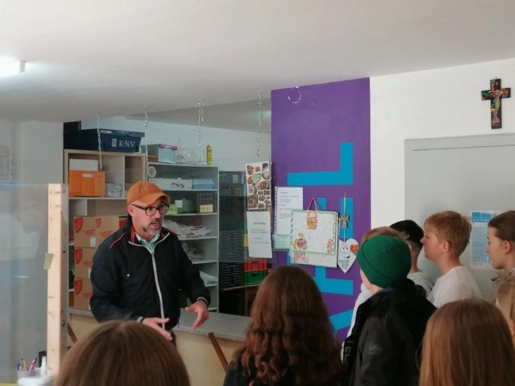 Andreas Geiger, der Leiter der Tafel in Wasserburg, hat uns die Arbeit vorgestellt und uns durch die Räume geführt. Er selbst sagt, dass er die Arbeit macht, weil er Menschen helfen will, die Hilfe brauchen. Das macht ihn glücklich.