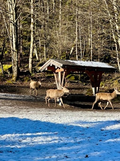 Am nächsten Tag machten wir eine Wanderung durch die verschneite Winterlandschaft des Nationalparks Berchtesgadener Land, um eine Wildtierfütterung zu beobachten. Wir hatten großes Glück, denn wir sahen viele Rehe und Hirsche ganz nah. Am Abend durften wir uns von selbst ausgedachten Sketchen, die jede Gruppe vorführte, unterhalten lassen.