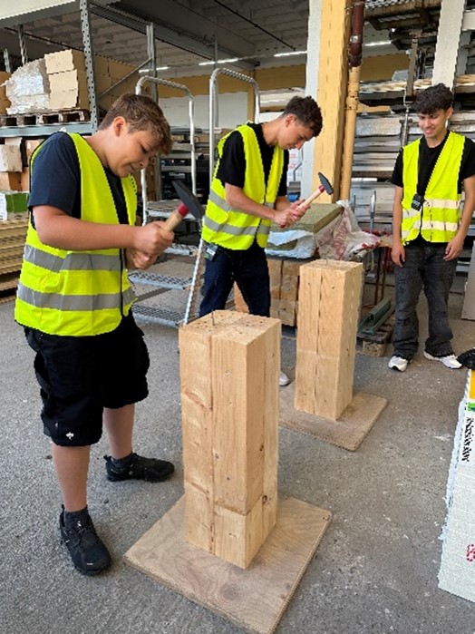 Im Rahmen der Besichtigung wurden zwei kleine Wettbewerbe organisiert, bei denen die Schüler ihr handwerkliches Geschick nochmal unter Beweis stellen konnten. Sie mussten in zwei Teams einen Dachstuhl aus Balken zusammenstecken. Dieser Wettbewerb förderte Teamwork und das handwerkliche Geschick der Teilnehmer. Die Gruppe, die den Dachstuhl am schnellsten und stabilsten zusammengebaut hatte, gewann.