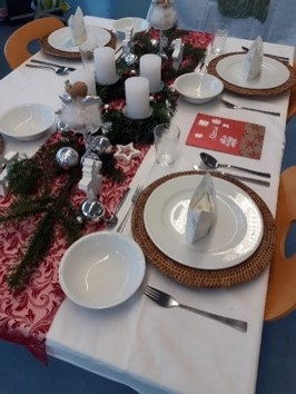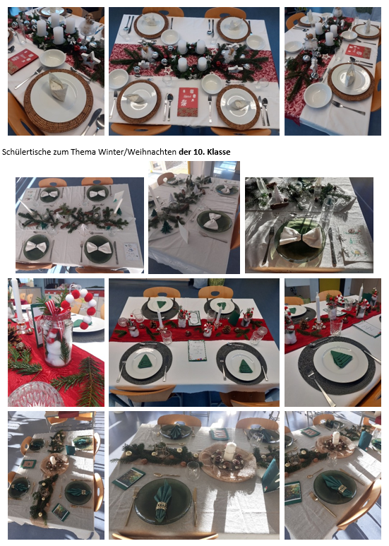 In den folgenden Stunden waren die Schüler/innen gefordert. Sie sollten zum Thema Winter oder Weihnachten ihre Kreativität unter Beweis stellen und schnell war klar, die kalte Jahreszeit muss nicht trist und grau sein! Mit den richtigen Ideen zur Tischdekoration kann jeder Abend zum Fest werden. In diesem Sinne: Lasst euch inspirieren, experimentiert mit verschiedenen Materialien und Farben und vor allem – habt Spaß dabei! Egal, ob für ein gemütliches Dinner oder eine große Feier, eure Tischdekoration spiegelt euren Stil wider und bringt jeden Raum zum Strahlen.