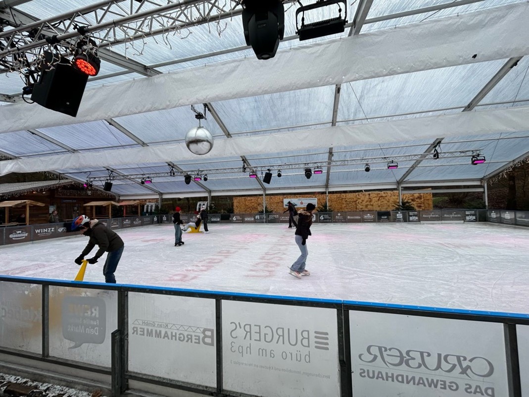 Neu in diesem Jahr war die Überdachung der Eisfläche, die nun zusätzlich mit einer Lichtanlage ausgestattet ist. Dadurch konnten die Klassen unabhängig vom Wetter aufs Eis gehen und die besondere Atmosphäre genießen.